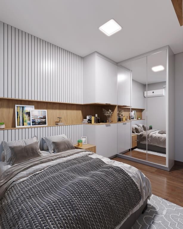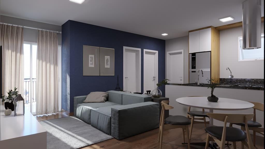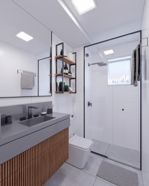 Entregue com piso laminado na sala e dormitórios, louças e metais sanitários, cozinha e banheiro com azulejos, piso cerâmico no banheiro, sacada e cozinha e janelas nos quartos com persiana embutida.